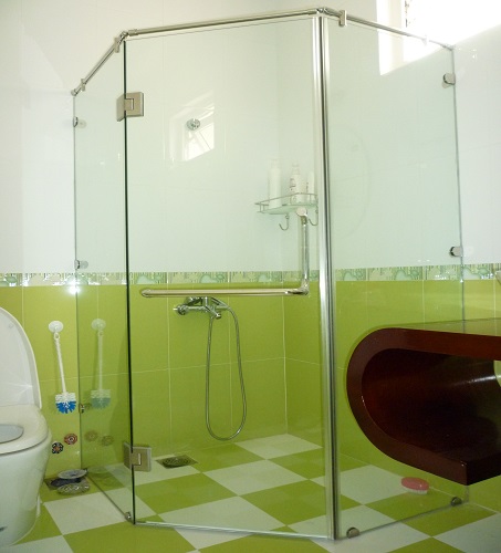 + Khi mua vách ngăn buồng tắm bạn nên hết sức chú ý đến chất lượng của các phần phụ kiện như: kẹp kính, tay nắm, khớp nối, giá đỡ..